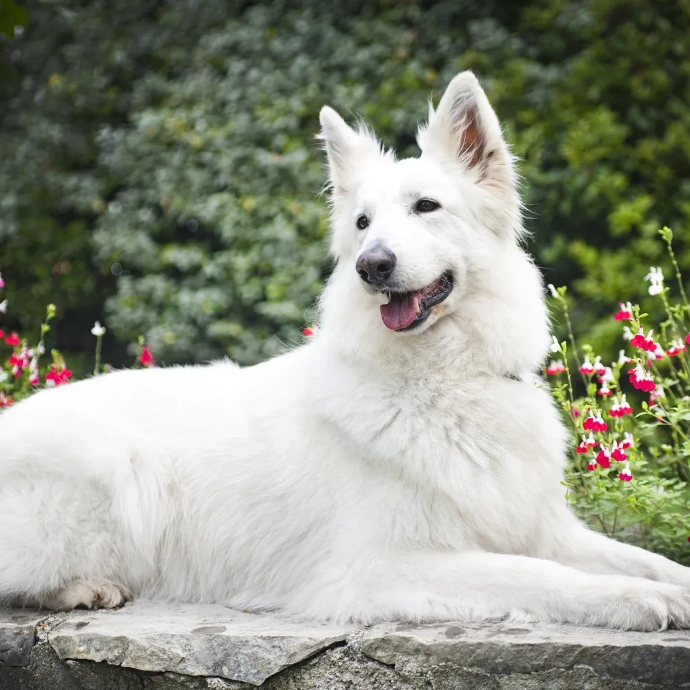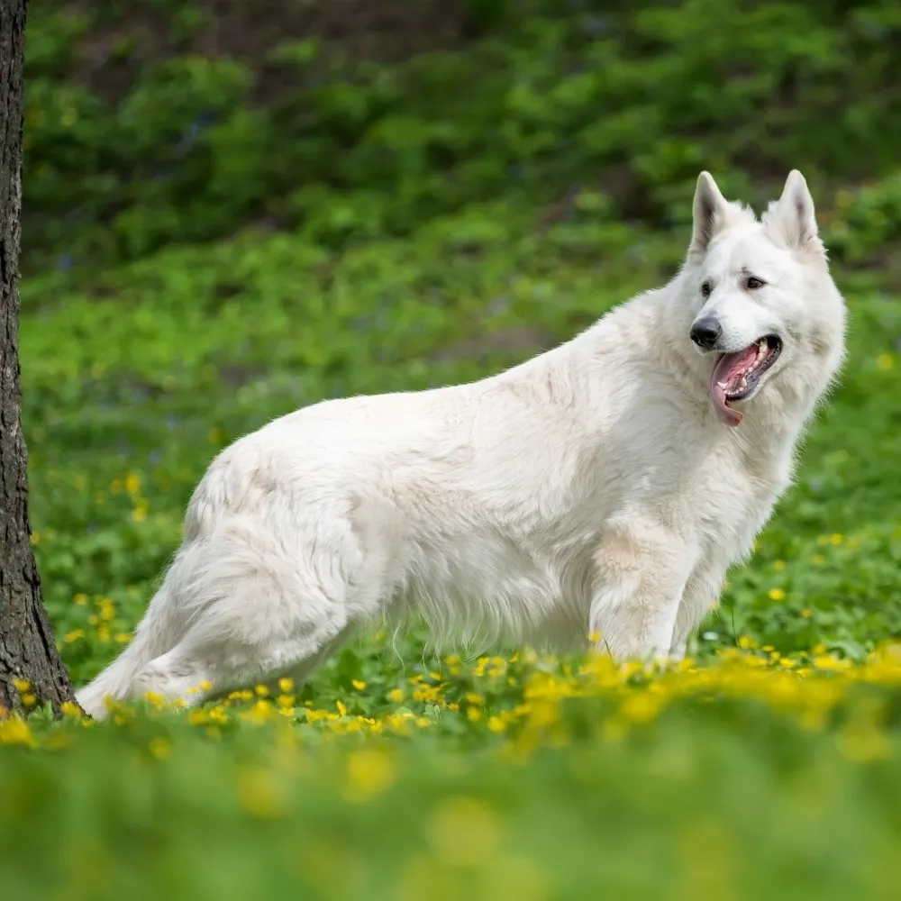 O Pastor Suíço é um cachorro de porte grande, atlético, com orelhas pontudas e uma pelagem branca elegante que se tornou sua marca registrada.